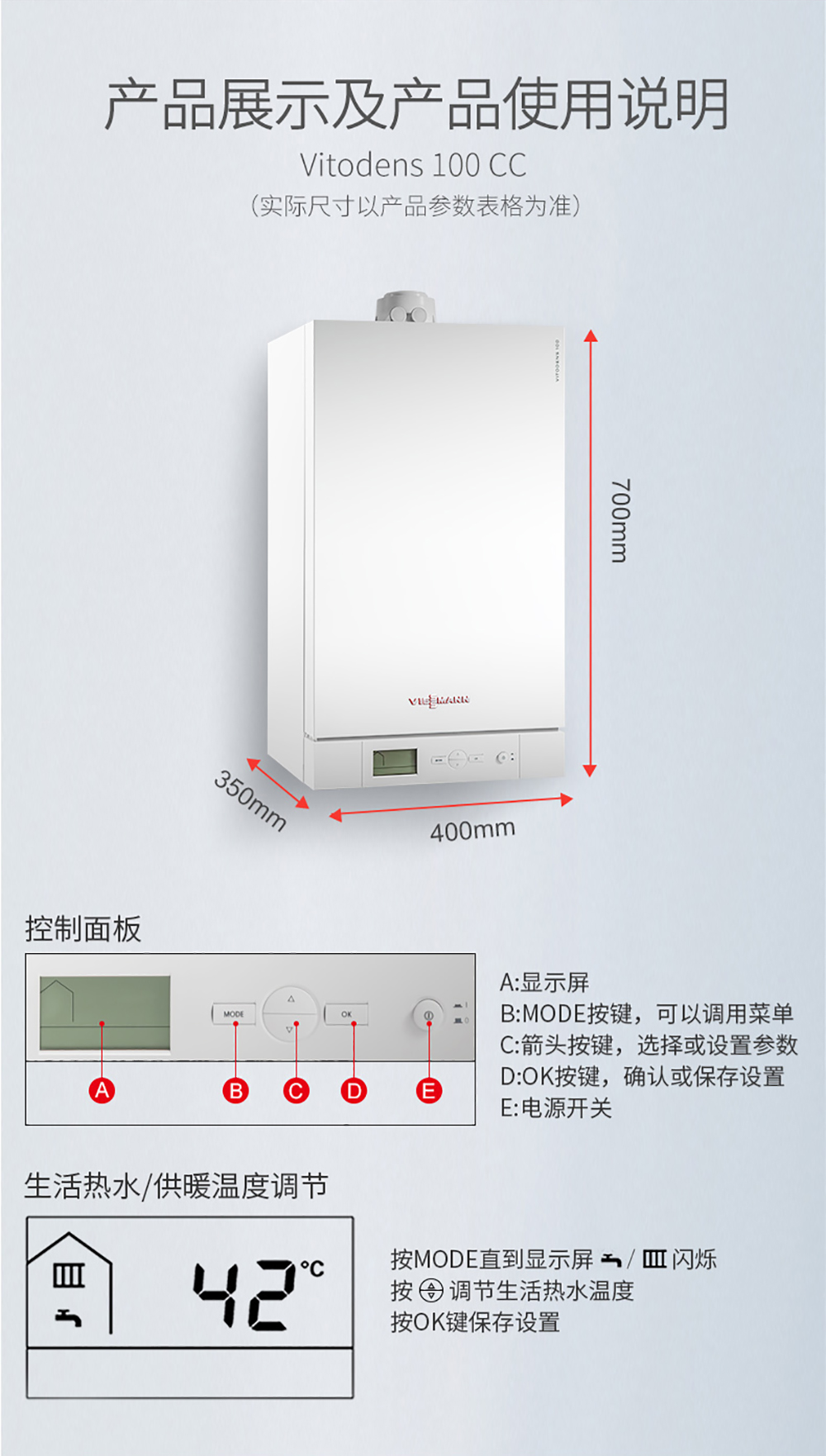 德國菲斯曼冷凝爐(國組)100CC以高性價比的方式提供暖氣和生活熱水,高達109%標準利用率,MatriX圓柱型燃燒器,內(nèi)置診斷系統(tǒng),方便控制,特別便捷的維修與服務(wù)。